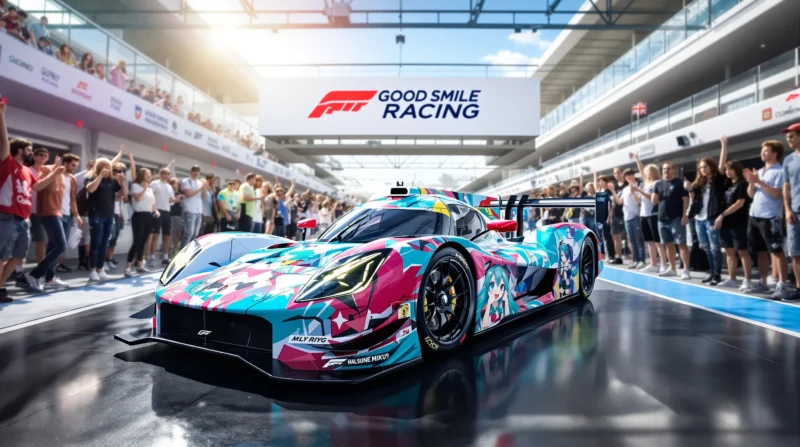 Picture this: a race car streaks past, its livery covered in vibrant anime art, fans waving glow...